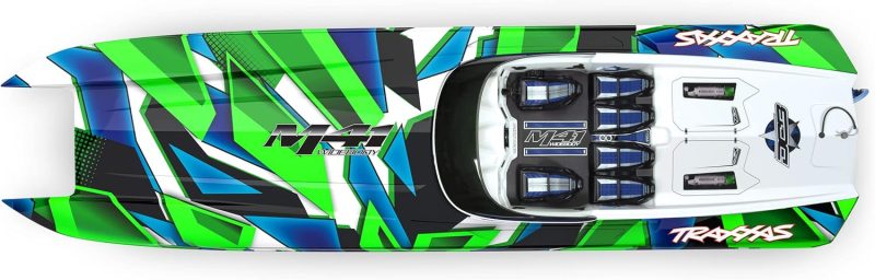 Twin-hull catamaran cuts across waves and smooth water at 50+ mph speeds Water-cooled. waterproof VXL-6s marine speed control 6s LiPo compatible with built-in low-voltage detection Blue-anodized aluminum rudder support. rudder. and drive strut TQi 2.4 GHz radio system and 5-channel receiver and Traxxas Stability Management Battery and Charger not included. Manufacturer recommended Traxxas Part #2990…