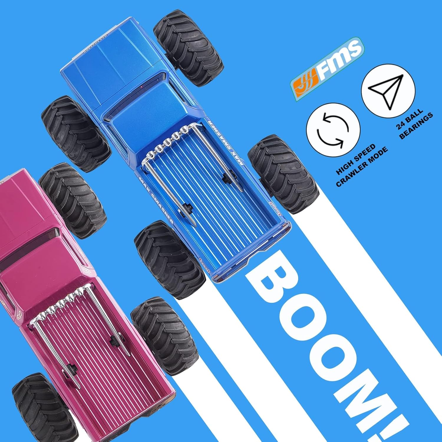 - 【Fms FCX24 1/24 Smasher RC Truck】Adopts FCX24 chassis. 2.4GHz remote control lighting system. electroplating with realistic details. quick-release shell structure and hollow large-size tires.