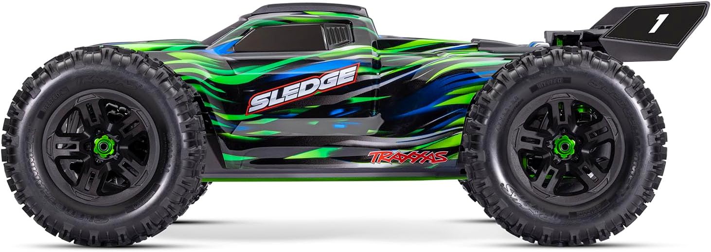 Engineered. Tested. Built to a higher standard. The all-new Sledge is made to exceed your expectations for quality. toughness. and fun. The rock-solid chassis. massive steel drivetrain. ferocious 6s power. and race-inspired handling leave everything else in the dust. New belted Sledgehammer tires limit high-speed tire expansion for a larger. flatter contact patch and game-changing high-speed precision and control.