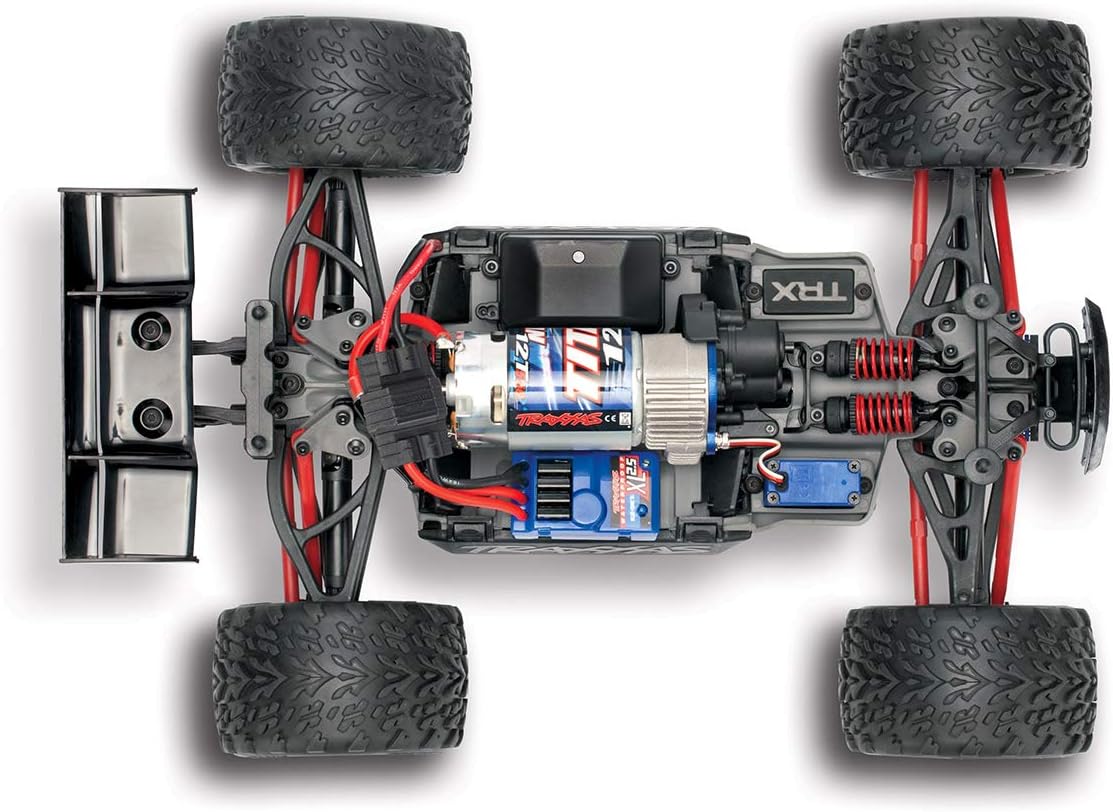 - Features: Ready-To-Race with included 6-cell NiMH Power Cell battery with iD 2-amp USB-C fast charger Revo suspension technology for superior handling and control Full-time 4WD Titan 550 motor Waterproof electronics Torque-Control slipper clutch Sealed differentials Realistic all-terrain tires with foam inserts Patented Traxxas High-Current Connector Metric hex hardware Rubber-sealed ball bearings