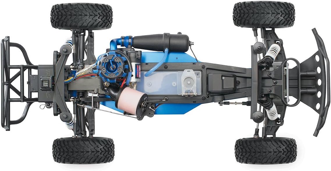 - High-torque steering and throttle servos. high-flow dual-stage air filter. and tuned exhaust system with blue-anodized aluminum header