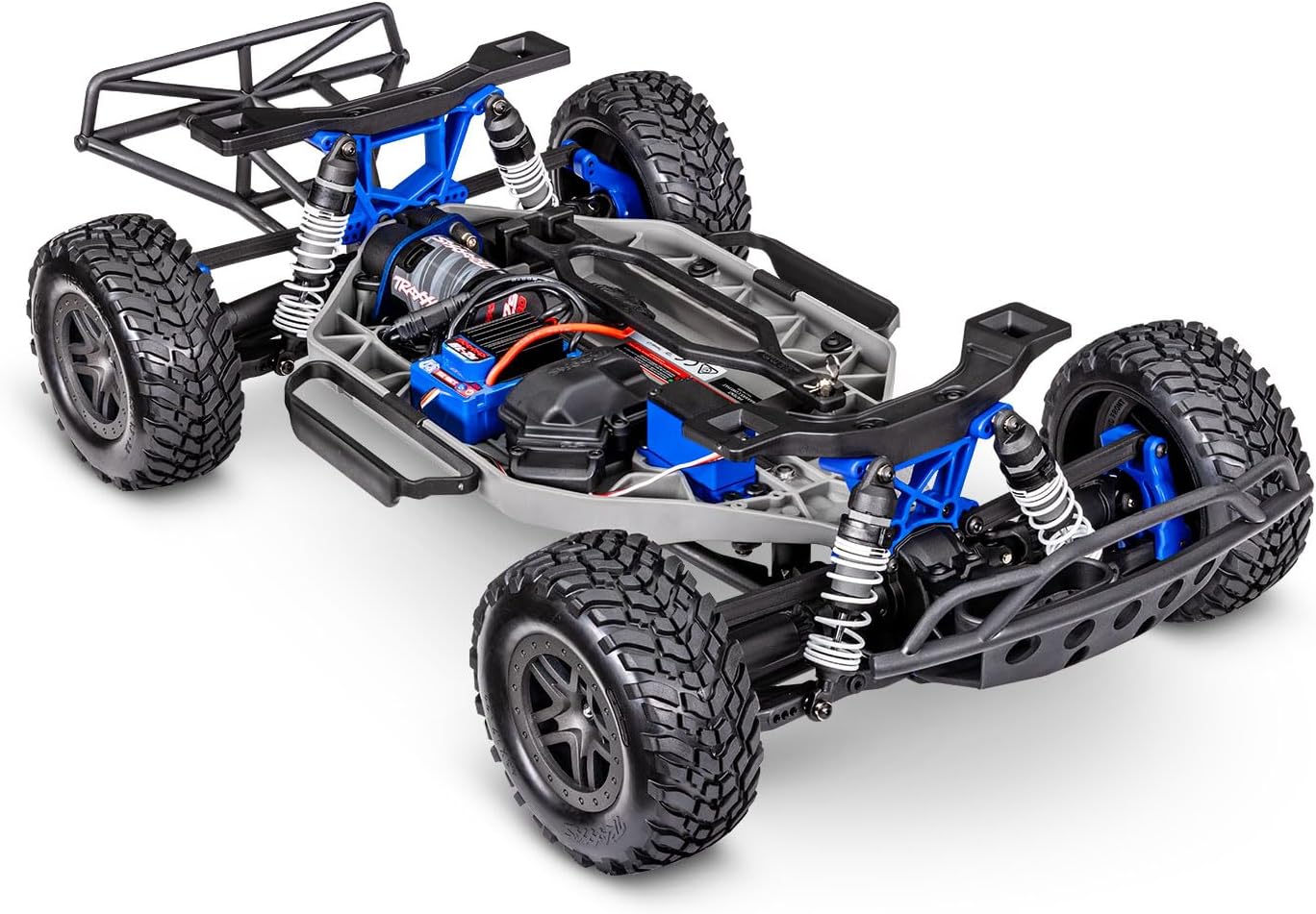Traxxas Slash set the standard for durability. performance. and fun by which all other short course trucks are measured. Now Slash 4X4 comes outfitted with the BL-2s brushless power system for even more high-flying. fender-banging. action. The efficient BL-2s delivers all-day fun and endless torque for 4-wheel burnouts and ultra-responsive acceleration. Additionally. Slash 4X4 now comes standard with Traxxas’ Extreme Heavy Duty Upgrade Kit to take the most brutal punishment in stride.