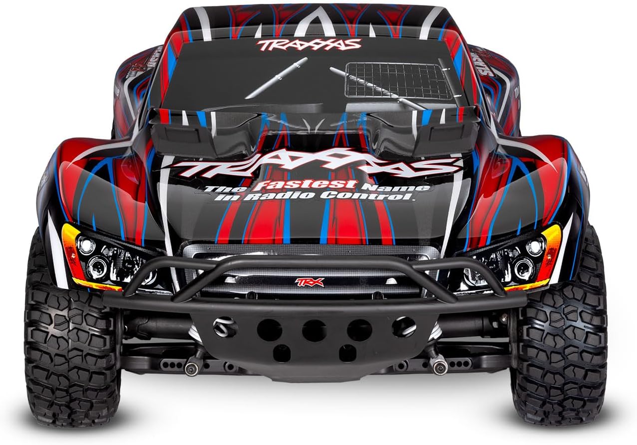 Traxxas Slash set the standard for durability. performance. and fun by which all other short course trucks are measured. Now Slash 4X4 VXL includes a factory-installed Extreme Heavy Duty Upgrade Kit to take brutal punishment in stride. Innovations like TSM. modular chassis design. and ultra-efficient shaft drive complement Slash’s track-tested precision. Slash 4X4’s extreme Velineon brushless horsepower provides dirt-roosting torque and screaming 60+ mph speed with a TQi radio system to keep everything under precise control.