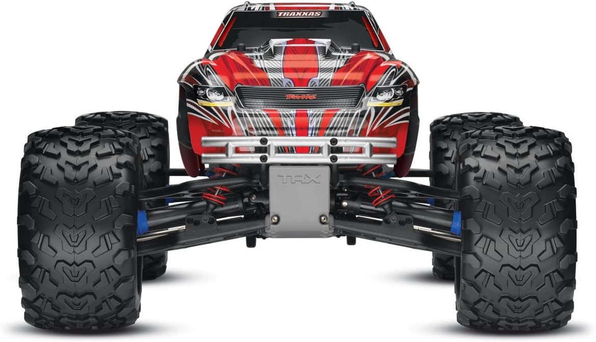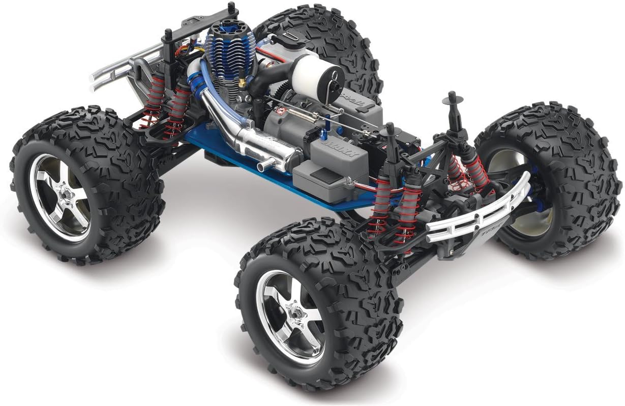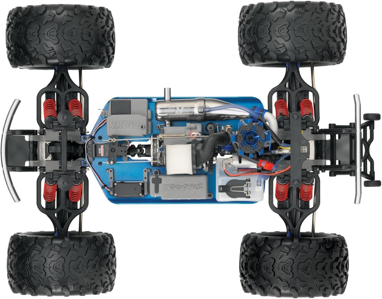 T-Maxx has become the world’s best-selling Ready-To-Race nitro monster truck by climbing. jumping. and ripping through terrain that others simply wouldn’t attempt. The TRX 3.3 racing engine makes broad. linear power practically anywhere in the RPM range. Brutal torque rips massive wheel-standing launches to soar past 45mph! Traxxas Stability Management allows arrow-straight acceleration on slippery surfaces. without fishtailing. spinouts. or loss of control. The large dual-stage air filter increases air flow to the TRX 3.3 racing engine. breathing in even more horsepower and torque. The Resonator dual-chamber Maxx pipe provides increased torque across the entire RPM range. The T-Maxx 3.3 is the biggest Maxx ever. Giant Maxx tires deliver increased ground clearance and massive grip to gobble up deep ruts and overcome boulders. Maxx tires come pre-glued to 3.8 Mirror-Chrome Hurricane wheels. The extended wheelbase chassis is formed from 4mm thick 6061-T6 aluminum and then anodized in brilliant blue. Meaty chassis braces and a rugged skid plate add rigidity. The TQi 2.4GHz transmitter comes equipped with a Bluetooth module that turns your Android. iPad iPhone or iPod touch (sold separately) into a powerful tuning tool. Download Traxxas link and the factory-installed telemetry sensors collect and record real-time telemetry data as you drive. Up to nine customizable gauges keep you in tune with the performance of your vehicle. The T-Maxx 3.3 is equipped with a forward-only. auto-shifting. two-speed transmission. Extra-wide gears and steel components add strength to handle extreme TRX 3.3 power. Revo Spec center drive shafts and sealed differentials are overbuilt to handle driveline. The T-Maxx 3.3 is easy to start with the EZ-Start push-button starter and included battery with charger. The T-Maxx 3.3 is built Traxxas Tough and backed by a team of pros who can get you up and running with a simple phone call or email.