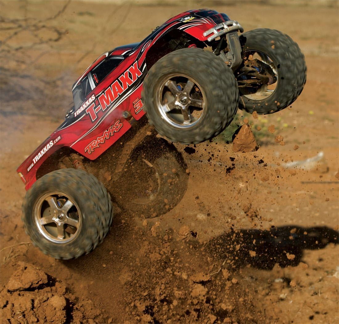 - Extended chassis. heavy-duty chassis braces. transmission skid plate and 6.3 Maxx all-terrain tires on mirror-chrome 3.8 Hurricane wheels