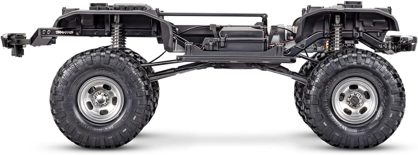 The Traxxas TRX-4 Ford F-150 High Trail is equipped with a factory-installed Long Arm Lift Kit and stands over an inch taller than the standard TRX-4. The exceptional all-terrain capability. smooth running drivetrain. and Traxxas Tough durability drivers expect from TRX-4 are all there. Black roll bar. chrome light housings. longer wheelbase. and slotted aluminum-finish mags complete the authentic look.