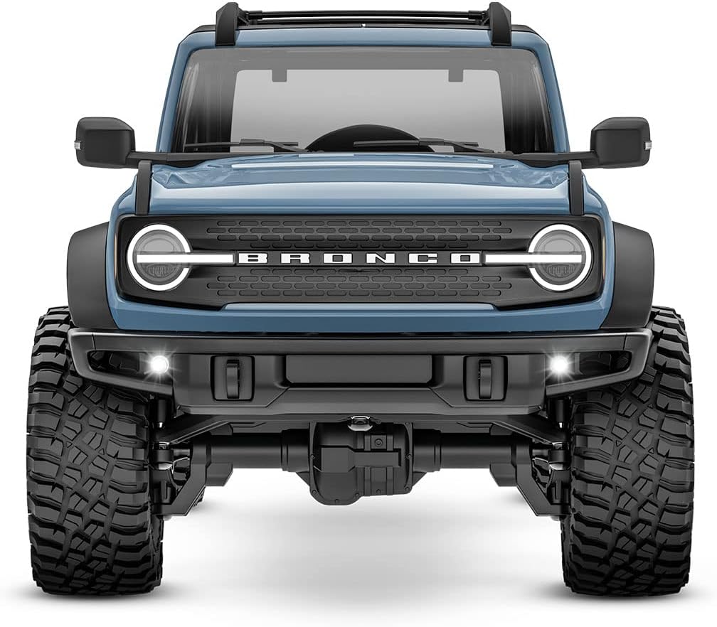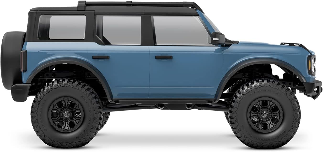TRX-4M Ford Bronco is a new way to experience all the fun. adventure. and scale realism of the Traxxas TRX-4 in a 1/18 platform. TRX-4M bridges the gap between the small crawler scene and 1/10 scale quality and performance. Oil-filled shocks. steel frame rails. and a smooth running drivetrain give it true outdoor capability over rocks and through grass and streams. The tight turning radius and precise throttle control give it fantastic indoor maneuverability.